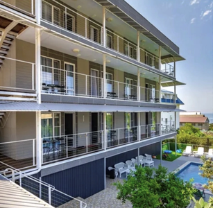 Приехали раньше на два часа, без проблем заселили. Спасибо большое. Номера чистые. Постельное белье и полотенца белые. Одноразовые тапки, гель для душа, чай кофе и даже шоколадочки есть. Хозяева приятные. Чистый бассейн. Еще понравилось что сушилки для белья под навесом. Под дождем не весит белье. Вид на море с балкона(фото)